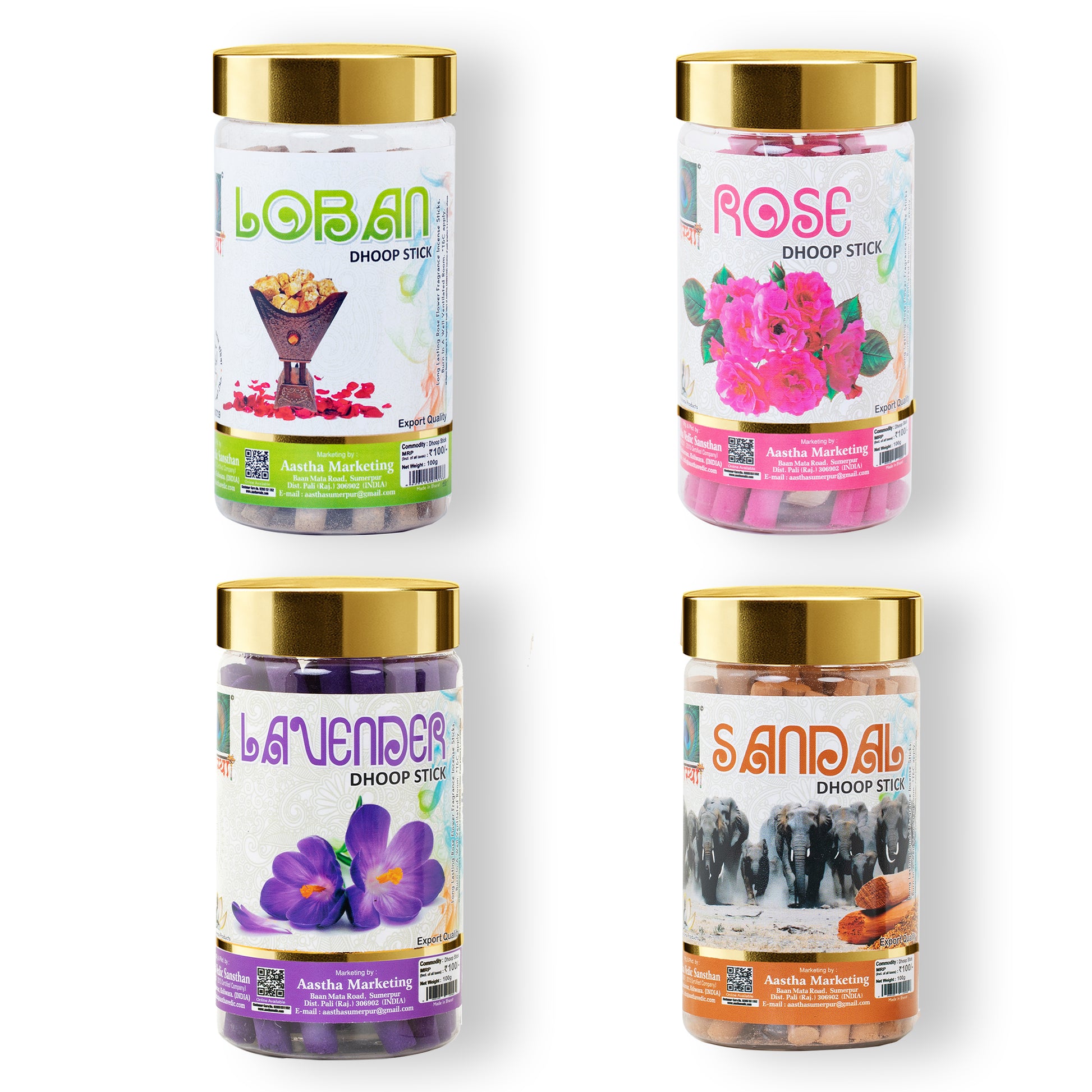 - AASTHA DHOOP STICKS COMBO PACK 4 IN 1 (LOBAN, ROSE, LAVENDER & SANDAL)