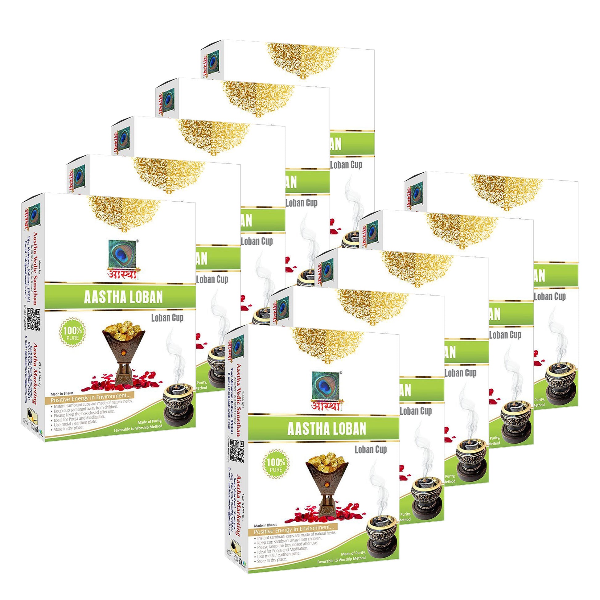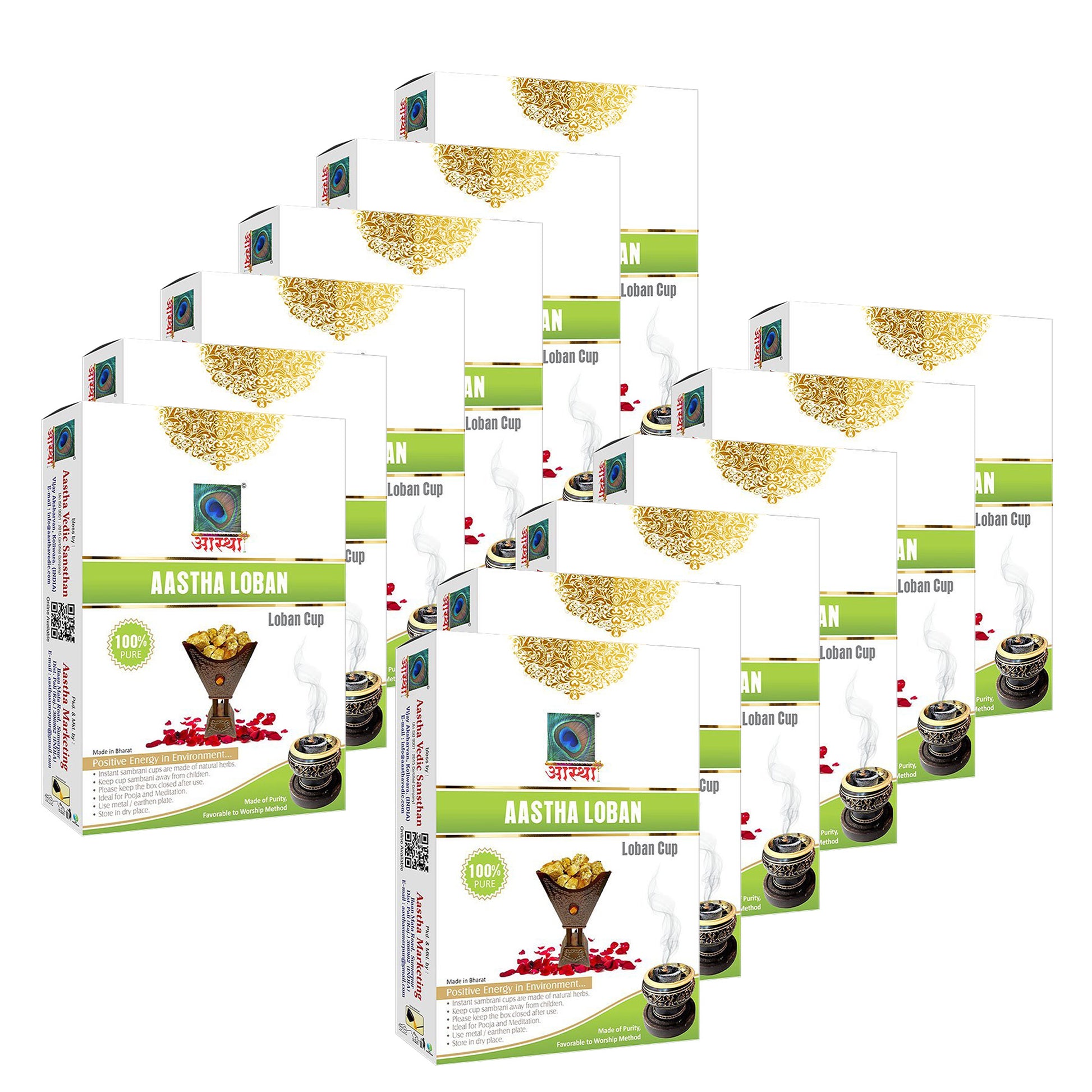 Aastha Loban Sambrani Dhoop Cups are made with pure natural herbs. It is 100% pure aromatic and create a pleasant environment. Simply light it and place it on the stand provided. Loban Cup is also called Sambrani Dhoop and is the finest energy purifier of the atmosphere within your home/office. Loban fume is a traditional and spiritual secret in India to uplift the positive energy level. It has been used for centuries by saints and kings. Often used in religious ceremonies, Loban is considered to have a great influence on cleansing and unblocking the human body’s energy centers/meridians. It is antiseptic, and is wonderful for cleansing, whether you wish to clear a room or simply for cleansing your aura. It helps to bring inspiration and creativity. It can provide psychic protection, wisdom, aids memory. It is also often used in prosperity spells. Use: While performing puja burn a cup by lighting it from one of the side and offer to the deity, upon the completion