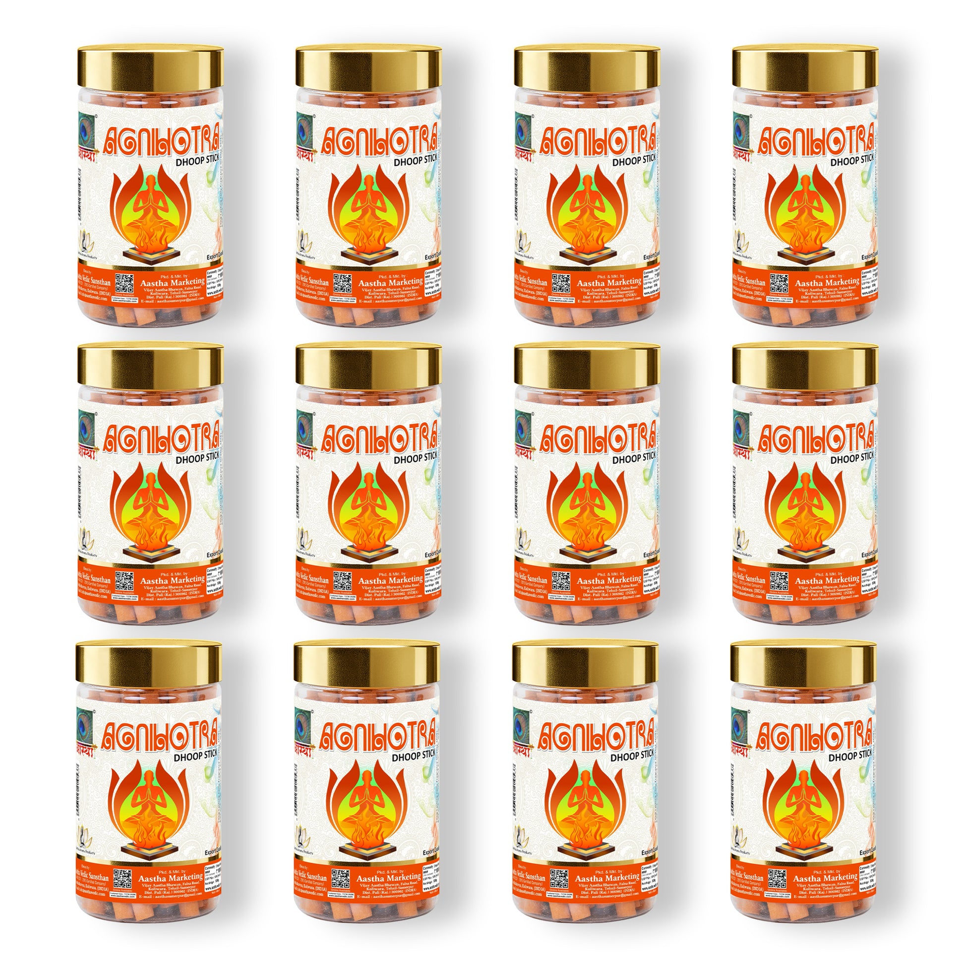 Aastha Gau Agnihotra Dhoop Sticks are Made with 100% Pure Organic and natural herbs. Ideal for pooja and meditation Burning Time : 25 Minutes | 30-35 sticks in one jar. Best product to gift someone which helps to make positive environment in their Home and Offices. Made with pure fragrance. It is 100% pure aromatic and create a pleasant environment. Simply light it and place it on the stand provided. The finest energy purifier of the atmosphere within your home/office. Gau Agnihotra fume is a traditional and spiritual secret in India to uplift the positive energy level. It has been used for centuries by saints and kings. Often used in religious ceremonies, Gau Agnihotra is considered to have a great influence on cleansing and unblocking the human body’s energy centers/meridians. It is antiseptic, and is wonderful for
